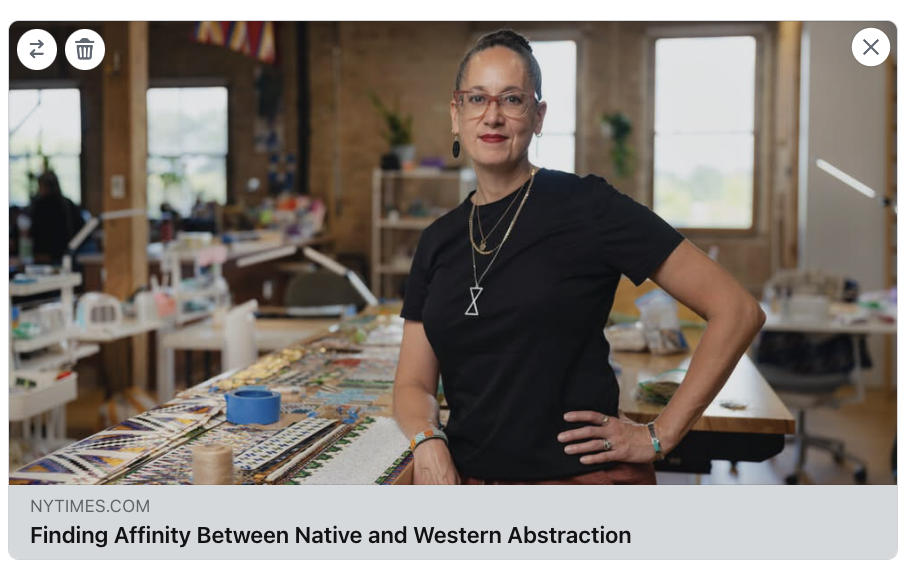 “Observing Dyani White Hawk speak about the sightlines of her exhibition at the Walker Art Center revealed the depth of her vision —how every perspective in the gallery becomes part of the work’s dialogue.” – Austin Reeves, Collections and Exhibitions Manager, Rollins Museum of Art