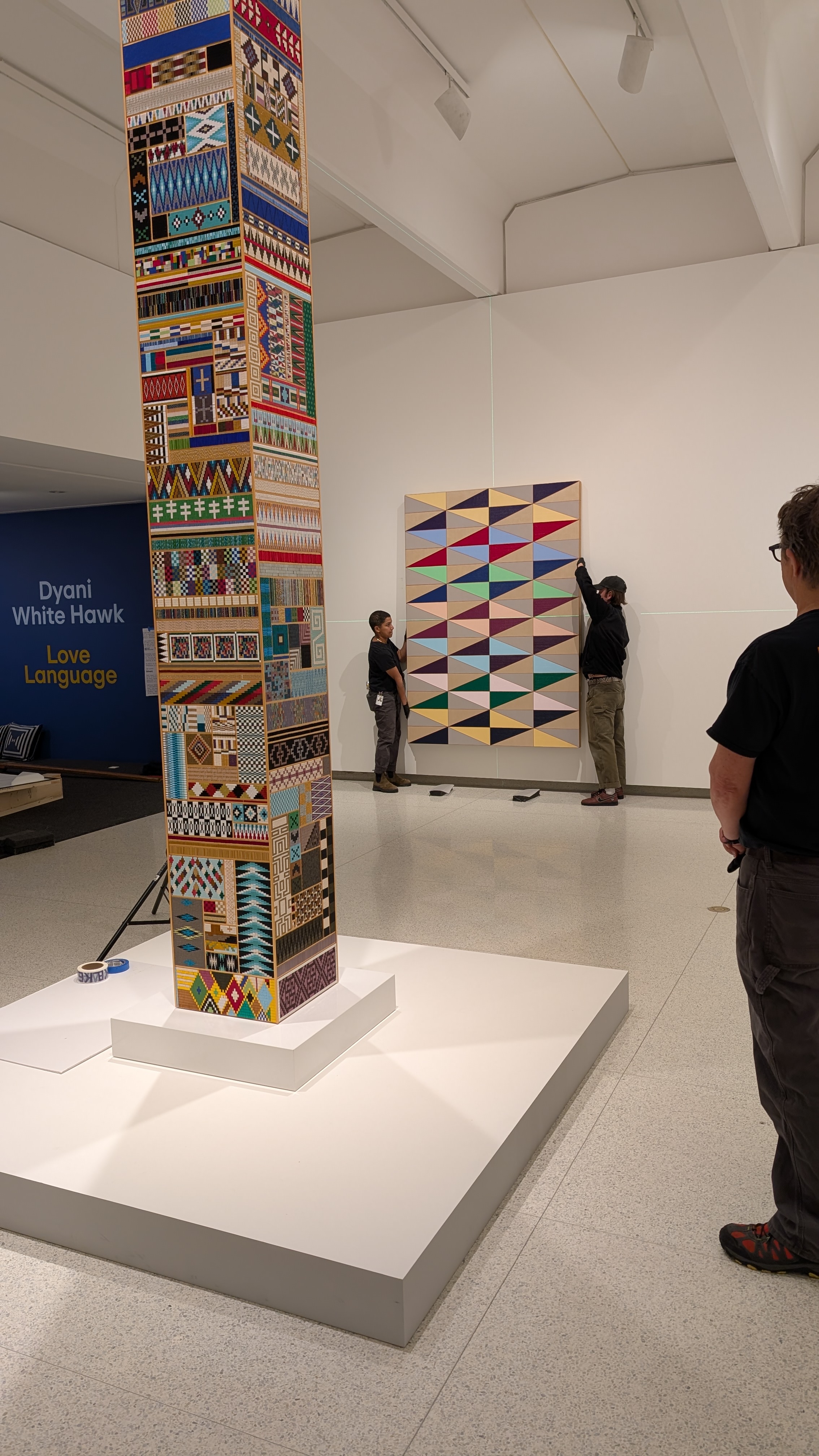 In October 2025, Rollins Museum of Art Collections and Exhibitions Manager Austin Reeves, joined artist Dyani White Hawk at the Walker Art Center, Minneapolis along with curators Siri Engberg, Senior Curator and Director of Visual Arts, Walker Art Center, and (via videochat)Tarah Hogue (Métis), Adjunct Curator of Indigenous Art, Remai Modern. As a Courier Austin helped with the transport and installation of this engaging work of art.